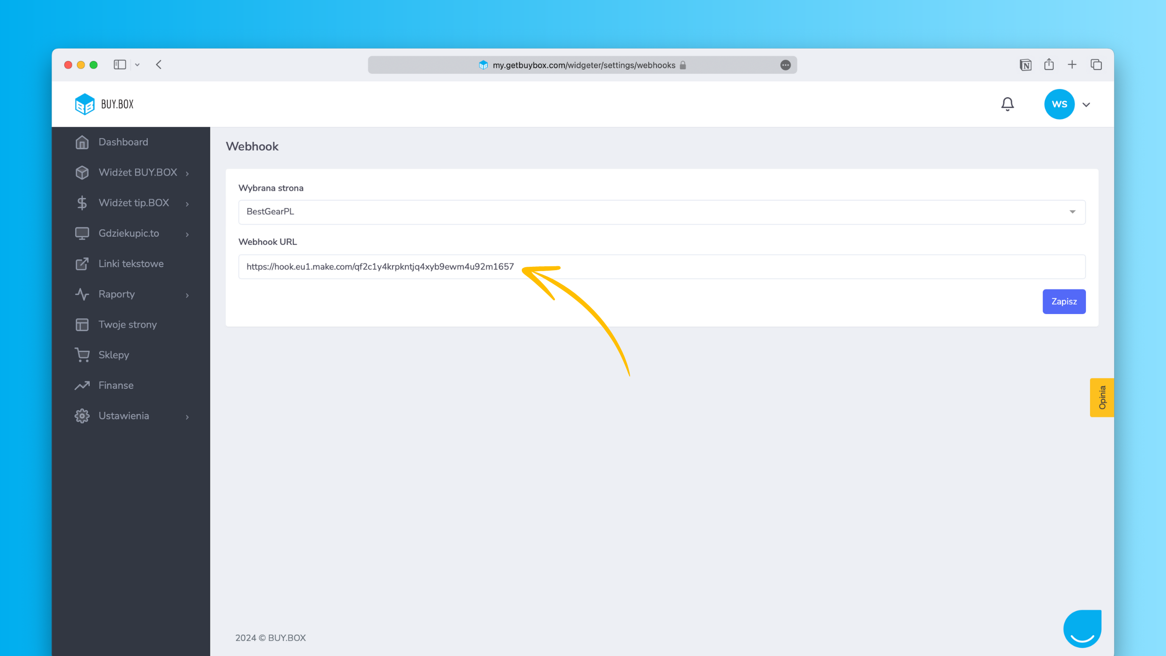 Po kliknięciu przycisku Zapisz na wskazany adres URL będziemy wysyłać informacje o każdej nowej transakcji zarejestrowanej dla Twojej strony wraz z danymi sprzedanych produktów.